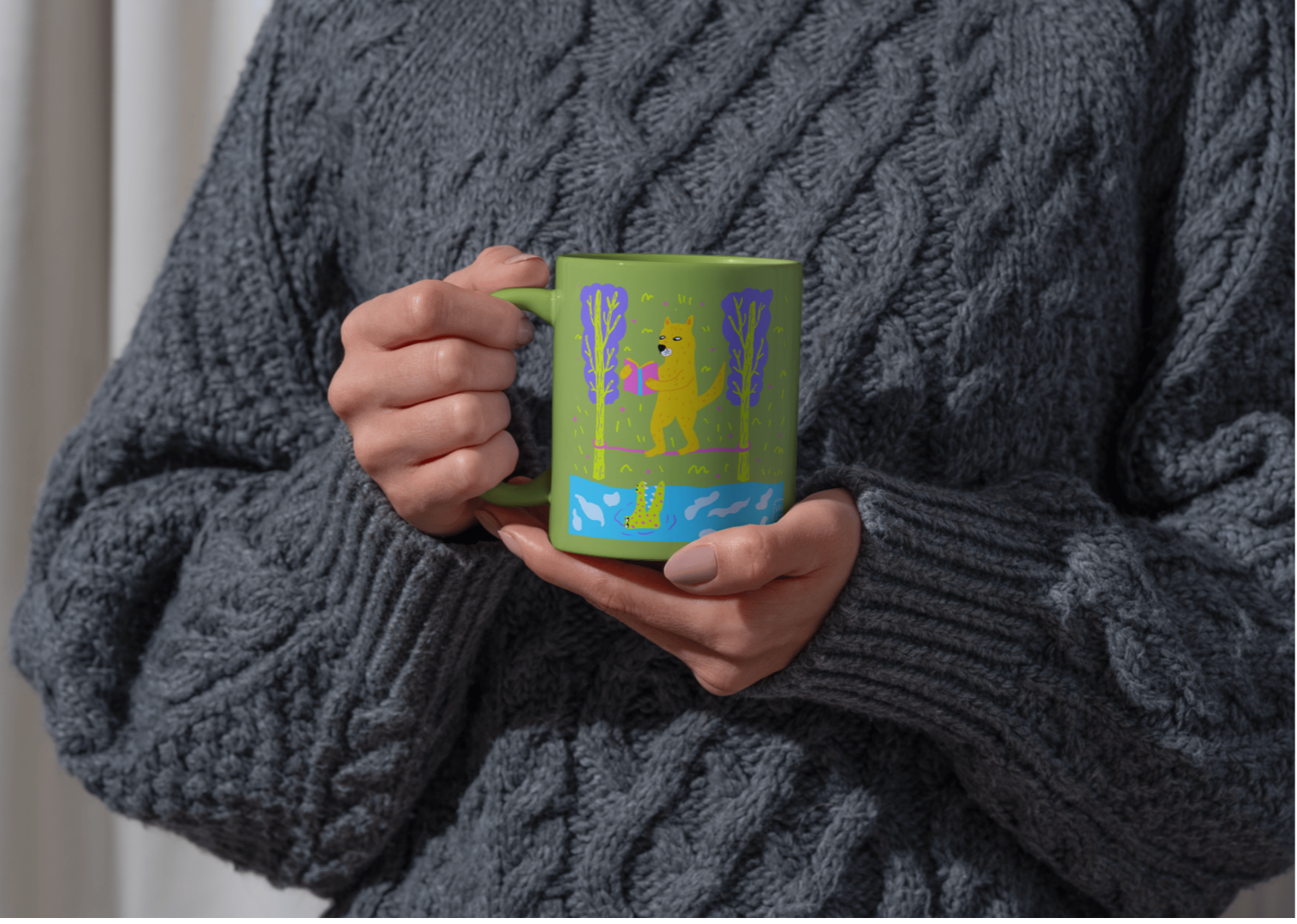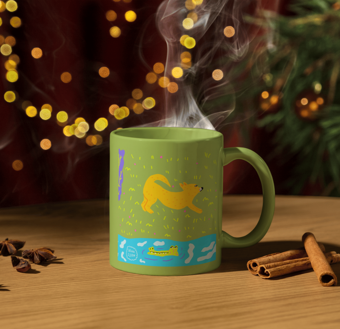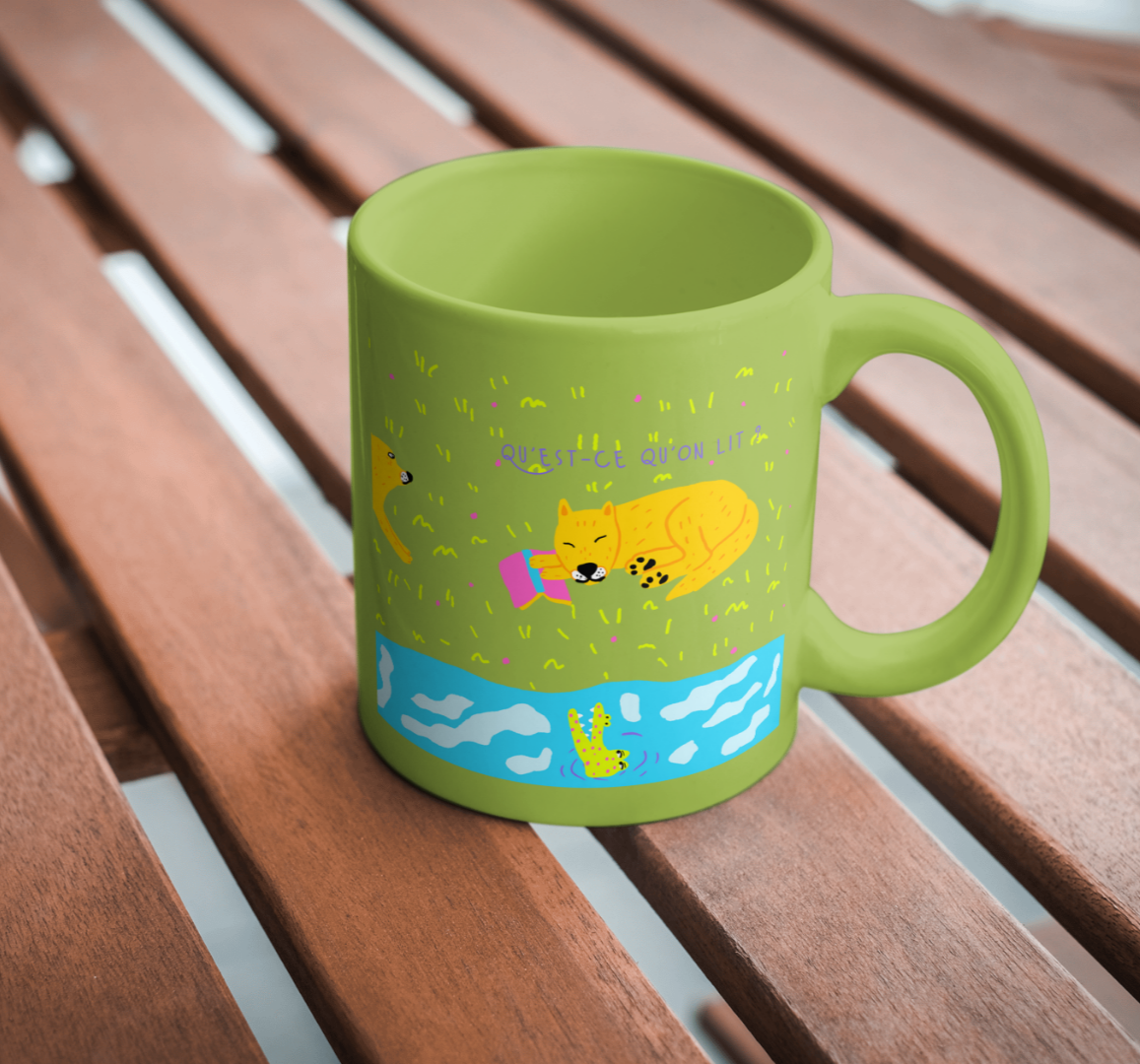 Pour cette édition daube de l'été, nous vous proposons un mug qui se démarquera visuellement de vos mugs habituels, par sa couleur verte, et son impression de bonne qualité d'une illustration estivale (qui est aussi une petite histoire).