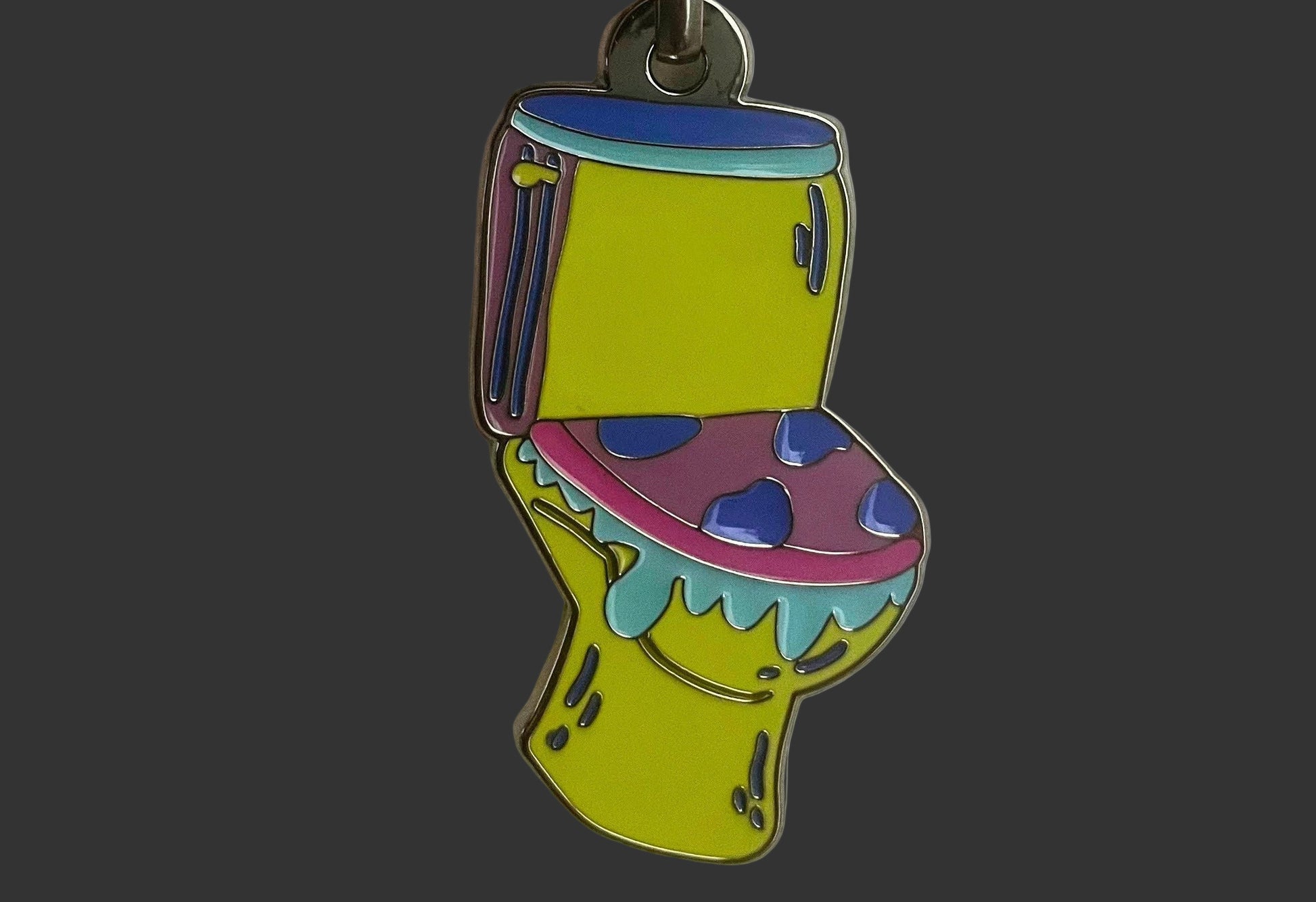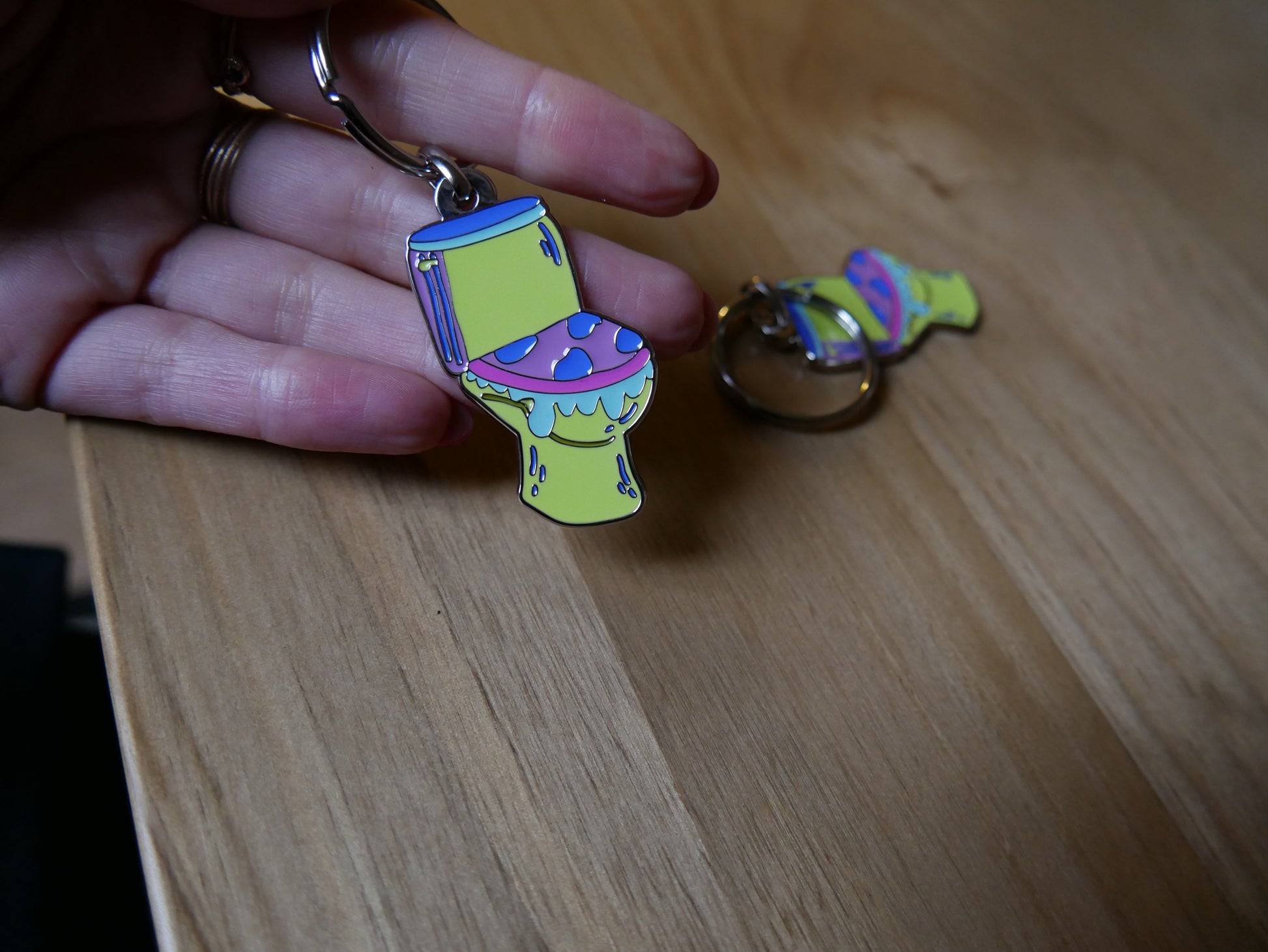 Porté-clés toilettes "Les larmes des ouin-ouins" en émail avec attache métal